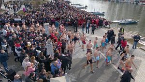Dan je bio sunčan, temperatura iznad proseka za januar, ali se ipak trebalo se suočiti sa hladnim Tamišom.
