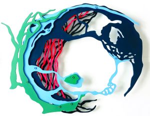 Izložbu čine apstraktne zidne kompozicije, koje karakterišu odnosi kolorističnih amorfnih formi i linija koje plutaju i opisuju momenat u kojem umetnica stvara.