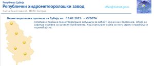 Biometeorološka prognoza za Srbiju za subotu, 18. februar