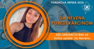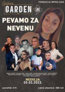Kako bi pomogli Neveni Radmanovac koja boluje od karcionoma, Fondacija „Srpska suza„ iz Beograda organizuje humanitarno muzičko veče u Pančevu u baru „Galaksija”.