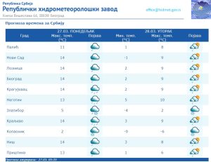 Biometeorološka prognoza za Srbiju za ponedeljak 27. mart