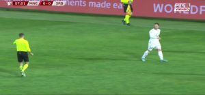 11. minut – Ponovo Vujačić! Sada je štoper Crne Gore bio odličan u skoku nakon centaršuta iz ugla, ali njegov pokušaj glavom odlazi pored gola. Još jedna solidna prilika za Crnogorce koji su bolje ušli u meč, već treći šut ka mreži koji čuva Vanja Milinković Savić.