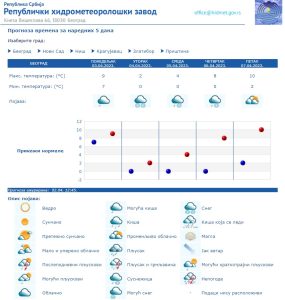 U Beogradu vetrovito i hladno, povremeno sa slabom kišom, a uveče i tokom noći očekuje se formiranje snežnog pokrivača visine od 10 do 20 cm.. Temperatura u najtoplijem delu dana biće oko 9 stepeni.