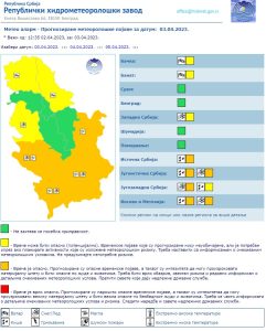 Na Mlavi, Peku, Timoku, Jasenici i Kubršnici vodostaji će biti u većem porastu tokom 03. i 04. aprila sa mogućnošću prevazilaženja granica redovne odbrane od poplava. Na Južnoj Moravi, Toplici, Veternici, Jablanici, Pustoj i Nišavi, kao i na Rasini vodostaji će biti u većem porastu tokom 03. i 04. aprila bez prevazilaženja granica redovne odbrane od poplava.