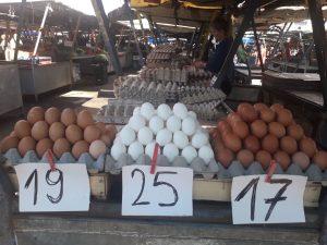 Iako su mnogi očekivali veliko poskupljenje jaja pred Uskrs, cena ovog proizvoda nije skočila onoliko koliko su to „čaršijske priče” nagoveštavale. Trgovci kažu da je potražnja za jajima zadovoljavajuća i da su obezbedili i bela jaja, koja su u vreme Uskrsa dosta tražena zbog uspešnijeg farbanja. Ona koštaju od 25 do 35 dinara, a moguće je da će pred sam Uskrs biti i skuplja, nagoveštavaju neki trgovci. Cena kokošjih jaja iznosi od 17 do 22