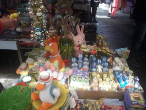 jaja i farbe za njihovo ukrašavanje, sveže i suvo voće i povrće, cveće i uskršnje dekoracije.