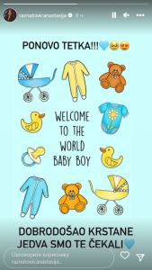– Ponovo tetka, dobrodošao Krstane, jedva smo te čekali – napisala je Anastasija.
