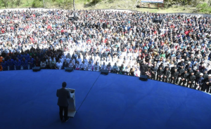 Predsednik Vučić je pozdravljen gromoglasnim aplauzom kada je došao do letnje pozornice „Vrelo“, gde se obratio prisutnima: