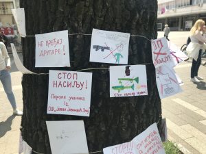 “Stop nasilju“, “Ne vređaj drugare“, “Stop Tik toku“, “Stop igricama sa ubicama i sa oružjem!“, neke su od izloženih poruka koje se mogu pročitati u centralnom gradskom parku.