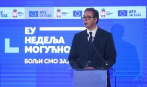 VUČIĆ NA ODRŽAVANJU EU NEDELJA MOGUĆNOSTI: Predsednik prisustvuje sa ambasadorom Žiofreom FOTO
