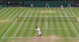 4:3 – Brejk Đokovića! – Stisnuta pesnica. To se nije odavno videlo kod Đokovića, a upravo tako je i proslavio činjenicu da je posle početnog vođstva na servise rivala, pa izgubljene bitke na mreži – narednu, baš tu, na sredini igrališta, dobio. Tako je Novak poveo sa 15:30, potom uspeo da ukroti snažan servis rivala, a pasing-šotom dođeo do 15:40 i prve dve brejk lopte u četvrtoj deonici. Prvu nije iskoristio jer je za nekoliko centimetara poslao lopticu pokraj terena, doduše iz velike defanzive posle snažnog servisa suparnika, a drugu – jer se desio 30. as Hurkača na ovom meču. Osokoljen time, na gotovo istovetan način je Poljak poveo, da bi posle potonjeg drugog servisa – lopticu poslao u aut. Potom je Nole uspeo da „prošeta“ suparnika (koji se na kraju okliznuo i pao) i stigao do treće brejk lopte, a nju je iskoristio nateravši Hurkača da izbaci lopticu u aut.