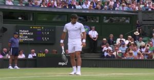 Novak Đoković se plasirao u četvrtfinale Vimbldona pobedivši Huberta Hurkača posle brobe koja se protegla na nedelju i ponedeljak – rezultat je u Srbinovom jubilarnom, 100. meču na londonskom grend slemu bio je 7:6(6), 7:6(6), 5:7, 6:4.