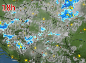 U ovom trenutku hladni front premešta se preko Hrvarske, Mađarske i severozapada Bosne i na svom putu uslovljava kišu i pljuskove sa grmljavinom, ali i osetniji pad temperture vazduha.