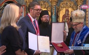Predsednik je danas posetio Preobraženjsku crkvu SPC u Sentandreji, nakon čega mu je uručen i Orden Eparhije budimske prvog reda