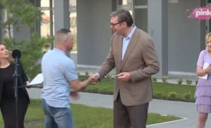 Vučić je potom uručio ključeve porodici Milojević, koja je najbrojnija, ima četvoro dece. Predsednik je potom uručio ključeve porodici Bjelić, koja među članovima ima i osobu sa invaliditetom.