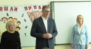 VUČIĆ U OŠ SVETISLAV GOLUBOVIĆ MITRALJETA Predsednik poručio prvacima: Budite vredni i odlični đaci