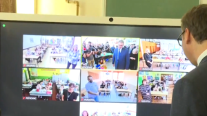 Vučić je, na početku posete, u Lovćencu prisustvovao postavljanju uređaja najnovije tehnologije – Huawei IdeaHub table Osnovnoj školi „Vuk Karadžić“, preko koje se može pratiti nastava u različitim školama.