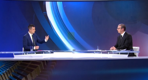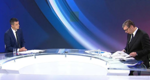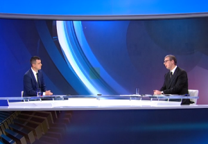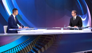 Predsednik Srbije Aleksandar Vučić gosuje na RTS-u.