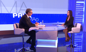 Predsednik Srbije Aleksandar Vučić večeras gostuje u emisiji „Prva tema“ na Prvoj televiziji.