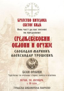 Bratstvo vitezova Svetog Vida organizovaće predavanje „Srednjevekovni oklopi i oružje“ u petak, 20. oktobra u 19 sati u prostorijama Gradske biblioteke Pančevo.