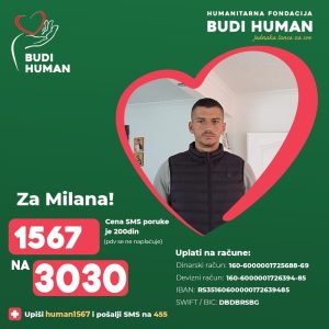 Ukoliko niste u mogućnosti da posetite večerašnji koncert u Omoljici, Milanu možete pomoći i slanjem SMS poruke sa sadržajem 1567 na 3030.
