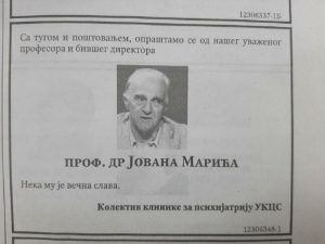 Poznati psihijatar i seksolog prof. dr Jovan Marić preminuo je u 82. godini, a kolektiv klinike za psihijatriju UKCS je objavio čitulju.