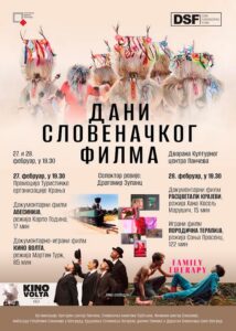 U okviru bioskopskog programa u Dvorani, 27. i 28. februar, u 19.30 na repertoaru je revija filmova „Dani slovenačkog filma“ u selekciji Dragomira Zupanca. Ulaz na sve projekcije je besplatan.