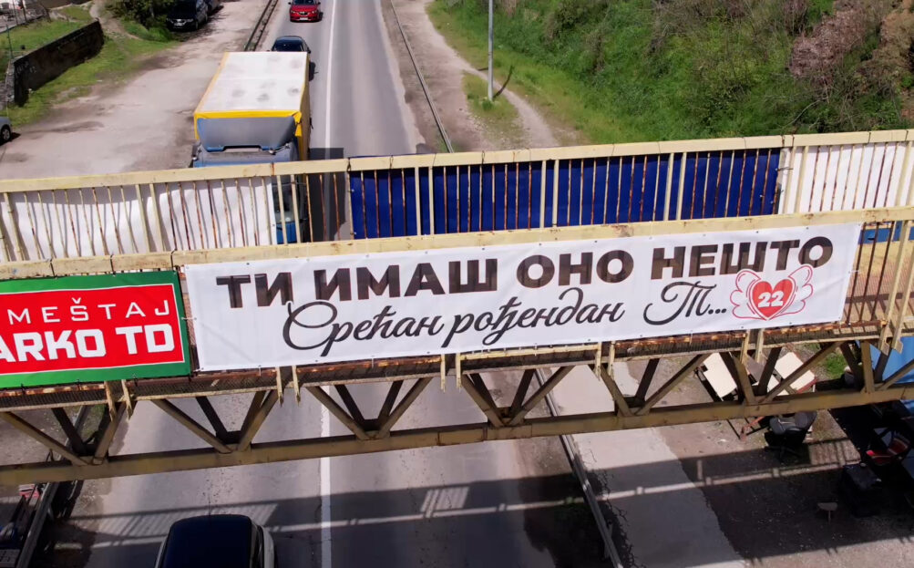 Čačak – Da još uvek ima i te kako romantičnih mladih ljudi i da su prve ljubavi nešto najlepše u našim životima svedoči i lep prizor iz Čačka. Naime, na pasareli iznad najprometnije saobraćajnice u Preljini osvanuo je nesvakidašnji natpis koji je oduševio prolaznike i vozače. Na transparentu velikim slovima piše: „Ti imaš ono nešto. Srećan ti rođendan 22, T“.