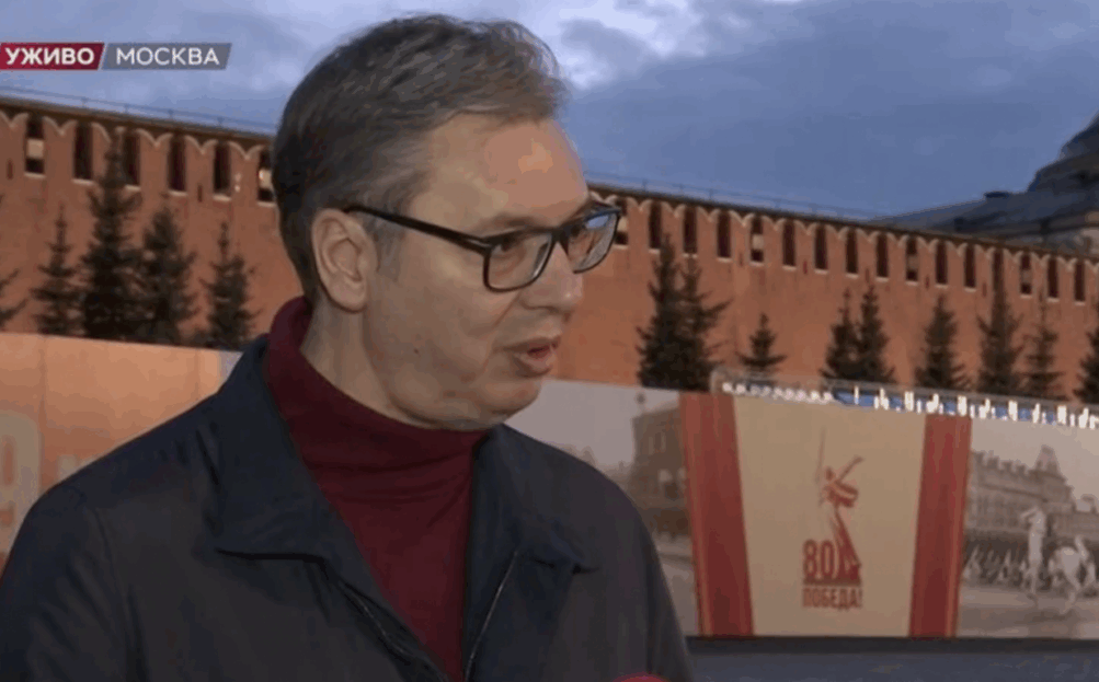 Predsednik Republike Srbije Aleksandar Vučić govori za Dnevnik RTS-a iz Moskve gde će prisustvovati velikoj paradi povodom Dana pobede.