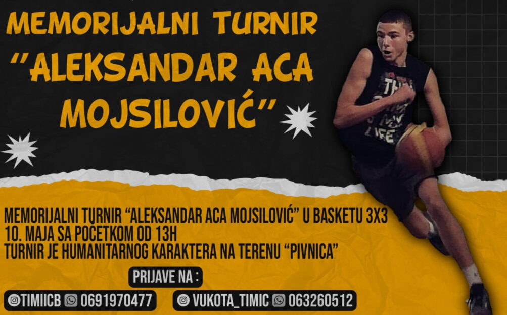 Memorijalni turnir u basketu 3×3 posvećen prerano preminulom Aleksandru Aci Mojsiloviću biće održan u subotu, 10. maja, od 13 sati na terenu poznatom pod nazivom „Pivnica“.