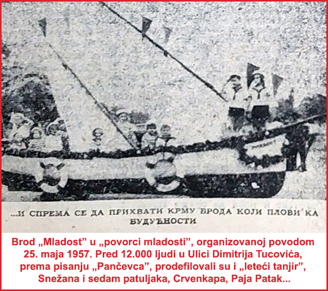Ne, nije ovo tekst o nekoj prethodnici današnjeg BUDI-ja, koji baš ovih dana veseli grad malim klovnovima, žonglerima, mađioničarima… Nije to ni neki novinski članak o nekom davnašnjem Pančevačkom karnevalu. „Veličanstvena povorka mladih” u stvari je izveštaj u „Pančevcu” sa proslave Dana mladosti 1957. godine u Pančevu.