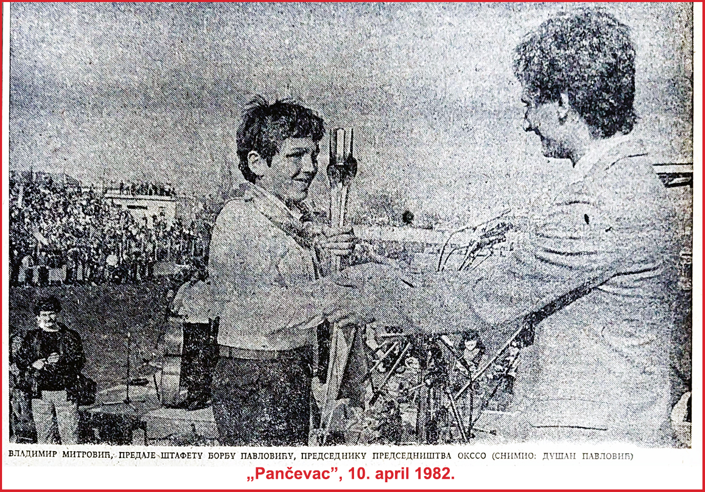 Malo ko zna da su Pančevci prvi izmislili štafetu, pre Kragujevčana. Ali Tito, zauzet susretom sa sovjetskom delegacijom, nije hteo da je primi – jer 1945. još nije shvatio da se od nje može napraviti još jedan ritual u slavu „najvoljenijeg sina naših naroda”. Ali uskoro će mnogi omladinci sanjati da je ponesu ili bar da učestvuju na sletu na Stadionu JNA, ako ni zbog čega drugog, zbog izostanaka iz škole i druženja s vršnjacima iz cele Juge.