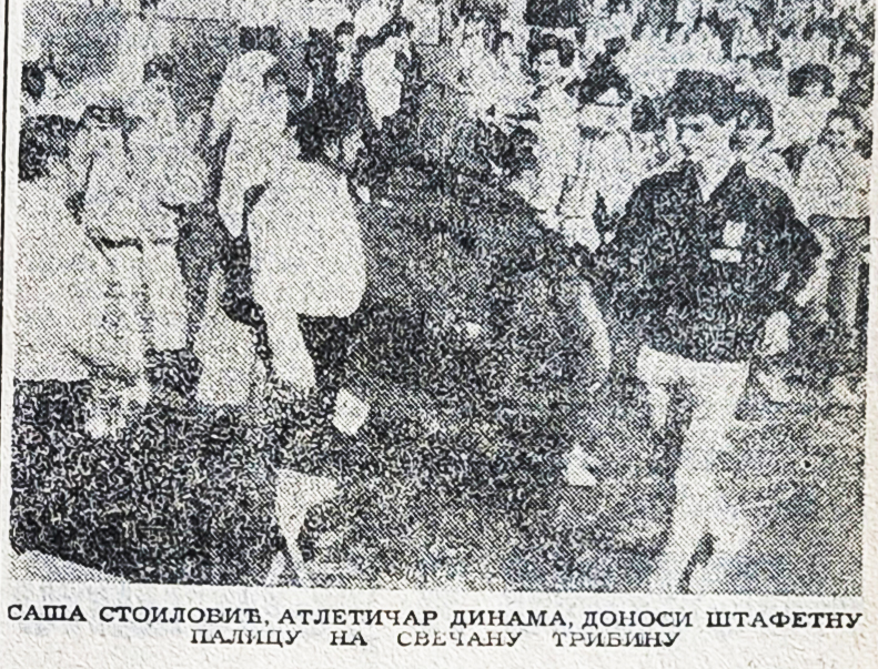 Dušica Banjac, učenica Hemijske škole, na prepuni Stadiion „Dinama” donela je štafetu (Pančevac, 1976. godina)