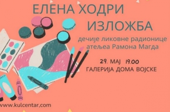 Kulturni centar Vršac poziva vas na otvaranje samostalne izložbe Elene Hodri, polaznice Dečije likovne radionice Ateljea Ramona Magda. Izložba će biti otvorena u četvrtak, 29. maja, u 19 časova, u galerijskom prostoru Doma vojske.