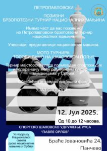 Sportsko šahovsko udruženje Rusa „Pavle Orlov“ organizuje na Petrovdan brzopotezni turnir manjina