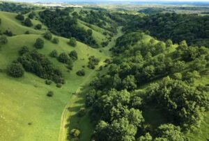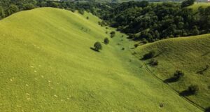 Zeleni talasasti brežuljci ispod kojih su naslage peska odaju utisak filmskih kulisa stvorenih uz pomoć veštačke inteligencije. Travnati predeli poput polulopti nižu se jedni za drugima u ravnici, a horizonte preseca tek po koja krošnja. Ovaj neponovljivi krajolik u Srbiji nosi naziv Zagajička brda.