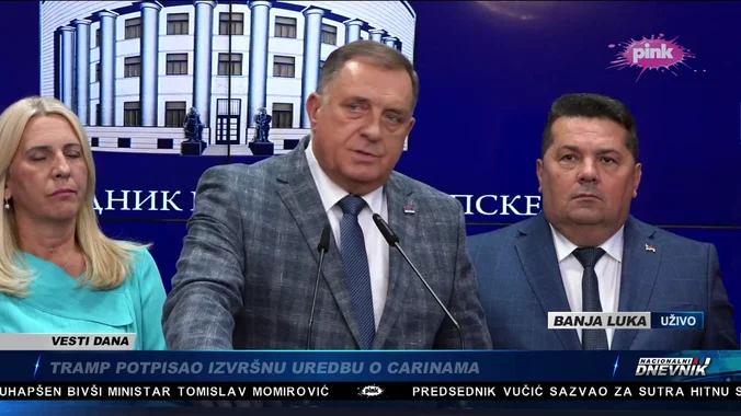 Printscreen/TV PinkOvo je udar na Republiku Srpsku, a ne na mene lično, kaže predsednik Republike Srpske Milorad Dodik povodom drugostepene presude Suda Bosne i Hercegovine. Ističe da presudu suda neće prihvatiti. Dodik je prvostepeno osuđen na godinu dana zatvora i šest godina zabrane političkog delovanja, zbog nepoštovanja odluka Kristijana Šmita.