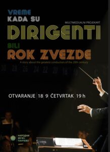 Izložba „Vreme kada su dirigenti bili rok zvezde“ je multimedijalna izložba na kojoj će posetiocima biti predstavljeno preko dvadeset najzančajnijih dirigenta svih vremena po izboru autora, pored toga biće izloženi omoti ploča na kojima su dirigenti, zatim prostorna postavka sobe za slušanje muzike kao i uređeji koji su omogućili ulazak muzike u gotovo svaki dom (pojačala, dekovi, trakši, gramofoni i sl). Posetioci će moći da vide rad dirigenata na probama kao i da pogledaju neke od njihovih koncerata na dva tv panela.