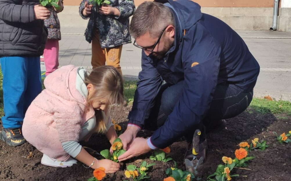 Najmlađi sugrađani, mališani iz Predškolske ustanove „Bubamara“, uz pomoć vrednih radnika Zelenila i podršku rukovodioca službe Marijete Bande, zasadili su jedno od cvetnih polja u centru grada.