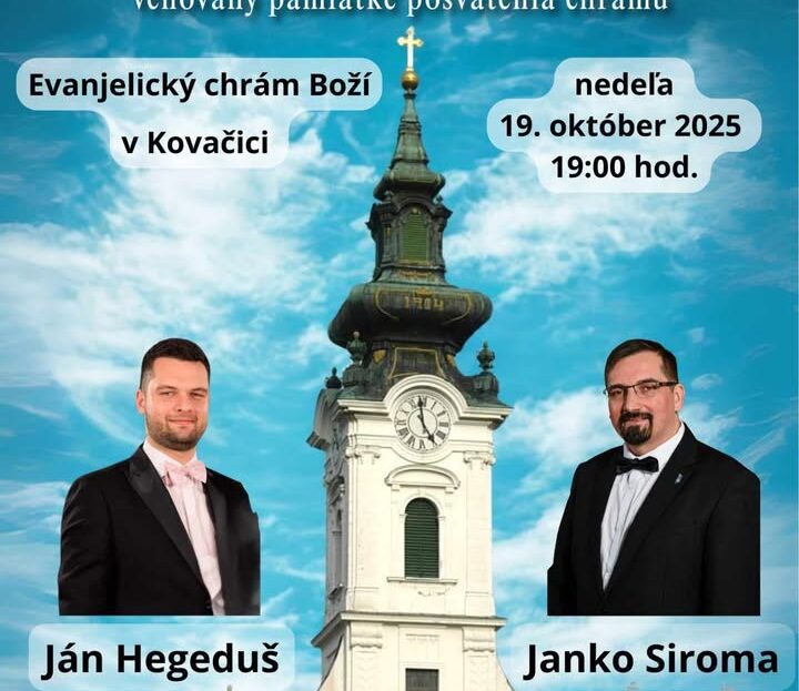 U Slovačkoj evangelističkoj crkvi u Kovačici, u nedelju 19. oktobra biće održan svečani orguljaški koncert posvećen uspomeni na posvećenje crkve.