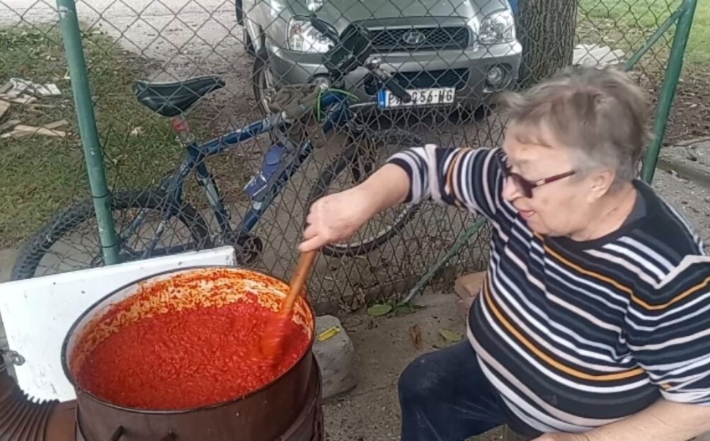 – Veoma je važno uzeti dobru papriku, crvenu i ravnu, da bi se lakše ispekla. Dan nakon pečenja se oljušti i ostavi u cediljku da se dobro ocedi, pa se samelje i ide u šerpu. I onda se ajvar kuva otprilike oko sat, a gotov je kada nakon pokreta varjačom po dnu šerpe ostane trag. Inače, mi volimo samo čistu papriku u ajvaru, a neko stavlja i plavi patlidžan, ali naša deca to ne vole – ističe Kata.
