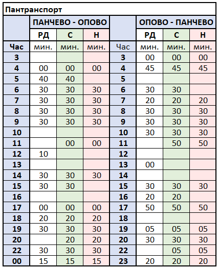 I dok poslednji autobus iz Pančeva put Opova, koji prolazi kroz pančevačka sela Jabuku i Glogonj, a zatim preko Sefkerina do Opova, kreće u 15 minuta posle ponoći, prvi jutarnji je u 4 sata. A onda, manje više, na svakih sat vremena sve do pola 10, pa onda tek 10 minuta posle podneva. Ima ih dovoljno i u toku popodneva. A oni koji bi da se od Opova u Pančevo vrate, ako su tamo otišli na izlet, a auto nemaju, mogu da u poslednji autobus sednu i u 20 minuta posle 11 uveče. O takvim polascima za svoja naselja mladež iz Pančeva može samo da sanja.