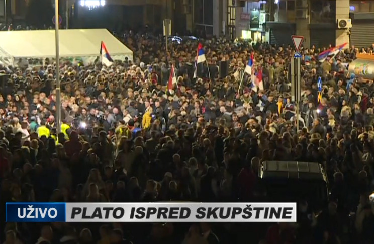 Miloš Vučević se obratio građanima ispred Skupštine rekavši da im se treba zahvaliti što čuvaju srpsku državu.