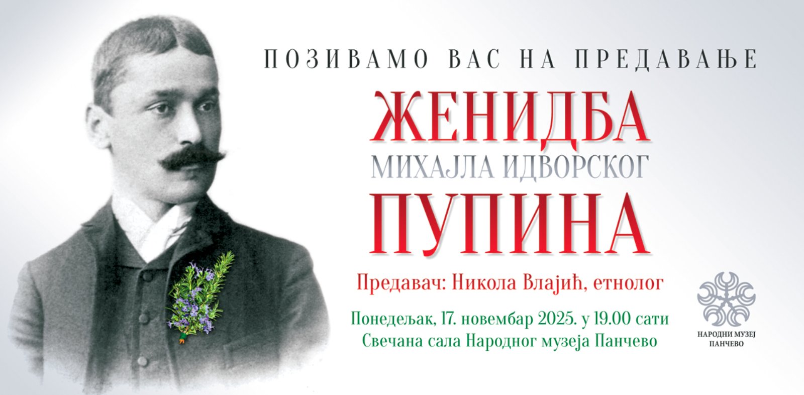 Predavanje pod nazivom „Ženidba Mihajla Idvorskog Pupina”, koje će Vlajić održati u ponedeljak, 17. novembra u 19 sati u Narodnom muzeju, biće prilika i za širu publiku da, i u vezi sa ovim dokumentom, sagleda koliko su Pupinovi lični odnosi, veze i koreni uticali na formiranje njegovog identiteta i na njegov rad. A u priči o ljubavi, porodici i tajnama jednog od najvećih srpskih naučnika, Vlajić će u prvom i drugom delu svog izlaganja, govoriti i o tekstovima drugih Pančevaca o Pupinu, kao i o Pupinovoj ćerki. Nema sumnje da će javnost i van Pančeva biti zainteresovana za nove činjenice iz Pupinovog života, ali i da je reč o vrlo značajnom naučnom otkriću koje je značajno i za dalja istraživanja života, ne samo velikog naučnika, nego i humaniste, publiciste i srpskog patriote.