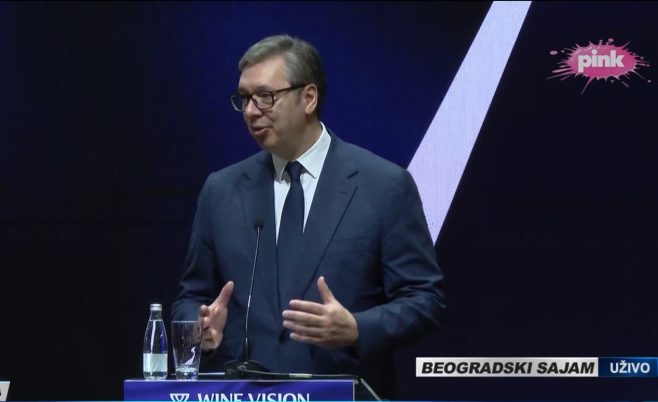 Predsednik Srbije Aleksandar Vučić na otvaranju Četvrtog međunarodnog sajma vina, hrane, rakije i turizma Vinska vizija Otvorenog Balkana na Beogradskom sajmu zahvalio na samom početku obraćanja gostima , vinarima i mladim ljudima koji ste učastvovali u organizaciji i ovog Wine Vision-a.