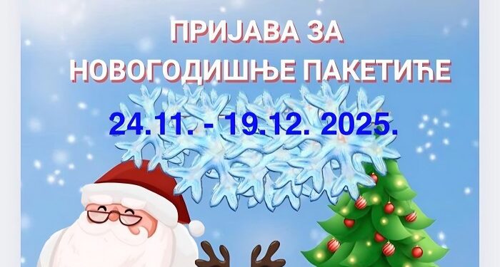 Prijava mališana za besplatne paketiće počinje u ponedeljak 24. novembra i trajaće sve do petka, 19. decembra 2025. godine.