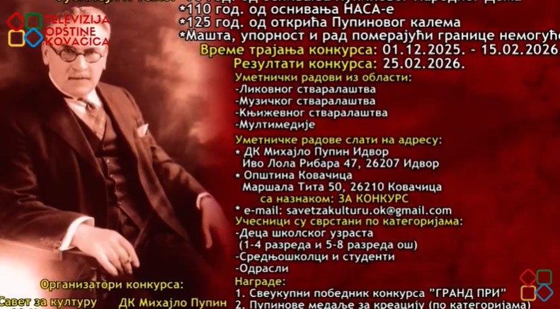 Savet za kulturu opštine Kovačica i Dom kulture „Mihajlo Pupin“ iz Idvora raspisuju 9. konkurs pod nazivom „Mihajlo Pupin – naučnik, rodoljub, humanista“, koji će ove godine biti posvećen temama: „Mašta, upornost i rad pomerajući granice nemogućeg“ i značajnim jubilejima – 90 godina od osnivanja Pupinovog narodnog doma, 110 godina od osnivanja NASA-e i 125 godina od otkrića Pupinovog kalema, javlja RTV Kovačica.