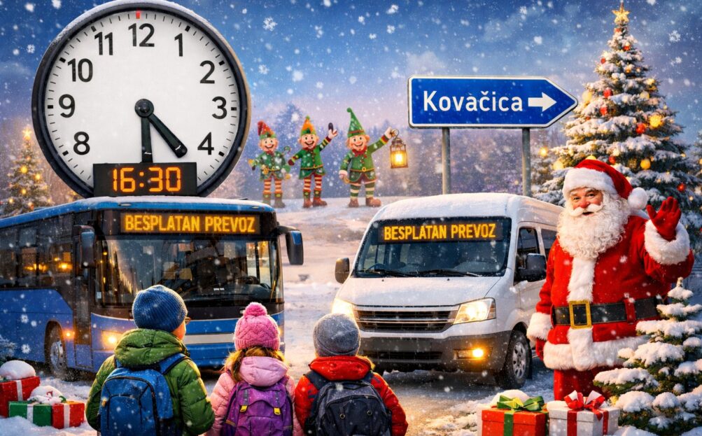 Opština Kovačica, u saradnji sa Turističkom organizacijom opštine Kovačica, objavila je raspored besplatnog prevoza za decu povodom tradicionalnog novogodišnjeg druženja i podele paketića, koje će biti održano u nedelju, 28. decembra 2025. godine, na trgu ispred zgrade Opštine Kovačica, sa početkom u 17 časova.