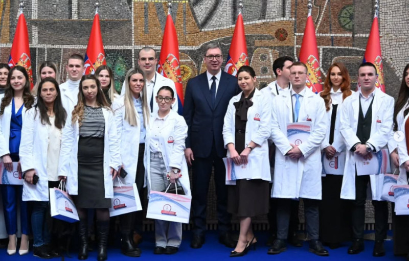 Upravo je predsednik Vučić dodelio ugovore o radu najboljim diplomcima medicinskih fakulteta i srednjih medicinskih škola u Srbiji.