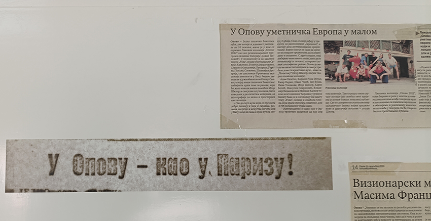 A na vratima njene kancelarije na dnu Galerije „Jovan Popović”, koja kao da se iz vasione spustila u ovu banatsku varoš, na vratima stoje isečci iz novina s naslovima – „U Opovu umetnička Evropa”, „U Opovu – kao u Parizu”…